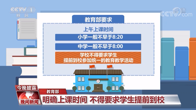 教育部基础教育司司长 吕玉刚: 我们在调研中也发现,上课虽然是8:20,有的个别要早到校早读,这次明确要求不能提前,当然说我家庭有困难,上班顺便带来,学校要妥善安置。有条件的地方和学校,中午可以合理安排学生午休时间。