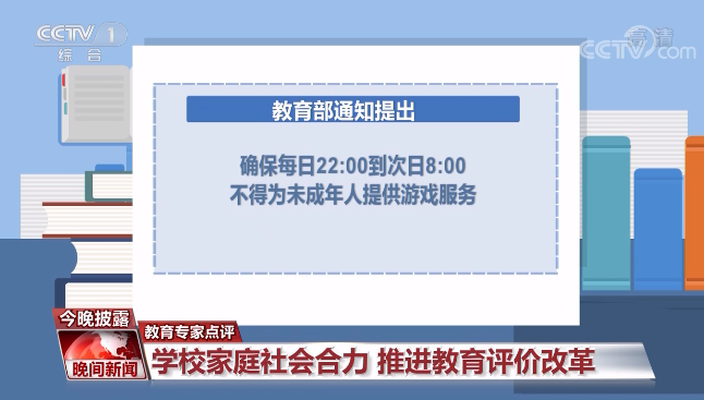 通知还特别提出,教育部门要会同相关部门采用技术手段加强监管,确保每日22:00到次日8:00不得为未成年人提供游戏服务。教育专家表示,要彻底解决学业负担过重问题,学校、家庭和社会教育须形成合力,推进教育评价改革。