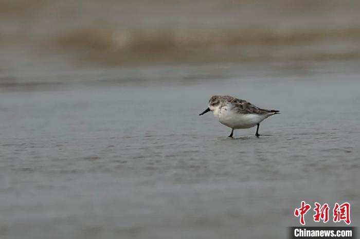 “刚刚往回走没多远,看到一群小的三趾滨鹬,就在那找,发现中间有一只勺嘴鹬,我们很高兴。”胡伟宁说。