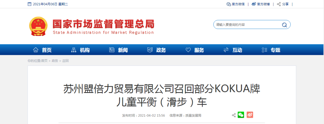 近日,国家市场监督管理总局官网连续发布召回通告,涉及多家知名品牌儿童平衡(滑步)车,快来看看!