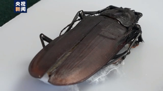 据了解,这次北京海关截获的泰坦大天牛标本长约14厘米,是国内常见天牛体型的3-5倍。