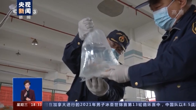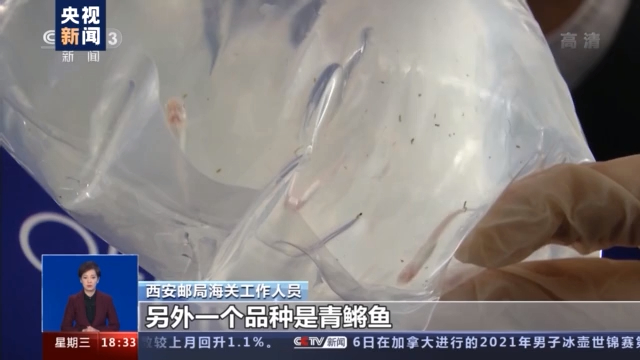 西安邮局海关工作人员: 经开箱查验,邮件中三个塑料袋共装有12尾鱼及鱼卵若干,品种分别是金鱼和青鳉鱼。