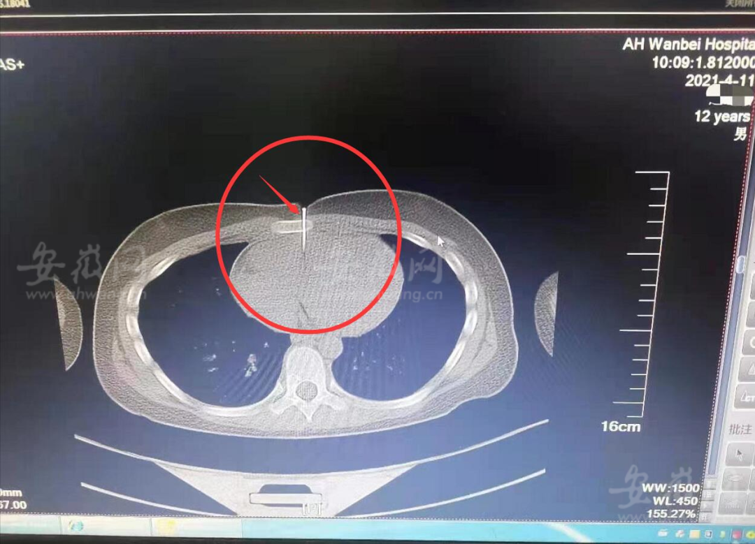 4月12日,记者从安医大一附院获悉,昨天上午十点左右,宿州市的12岁男孩畅畅(化名)在家玩耍时,不慎被装修用的气钉枪击中胸部。长约4CM的钉子,穿透胸骨,直达心脏。安医大一附院高新院区紧急开辟绿色通道,心脏大血管外科团队、手术室、麻醉科迅速准备,经过2个小时的手术,钉子被顺利取出,破损的心脏也修补完好,畅畅转危为安。