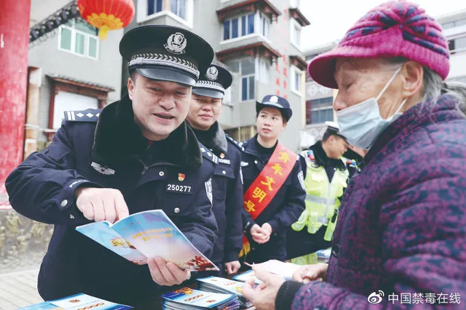 何拔(左一)在首个中国人民警察节开放日活动中向群众宣传扫黑除恶法律知识