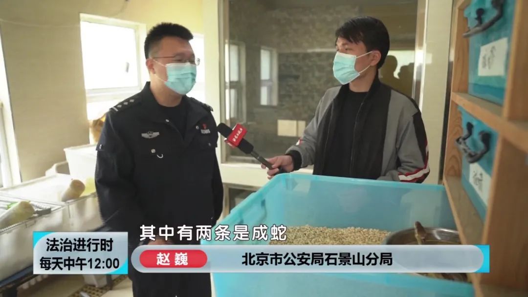 上午10点,记者跟随石景山公安分局森林公安大队的民警来到了位于顺义区的北京市野生动物救护繁育中心,眼前的这条球蟒,是民警从犯罪嫌疑人袁某的暂住地查获的.