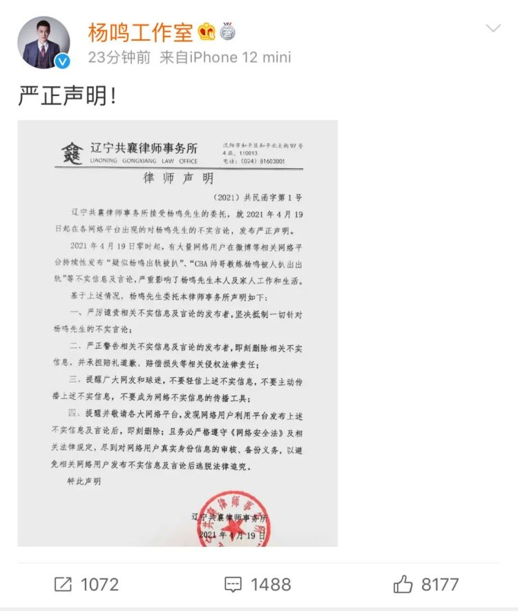 来源:辽沈晚报记者(lswbwx)综合@CBA联赛、中国篮球速递、@杨鸣工作室等