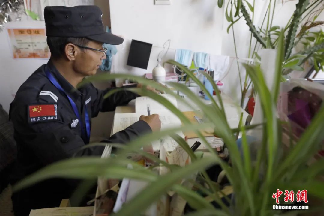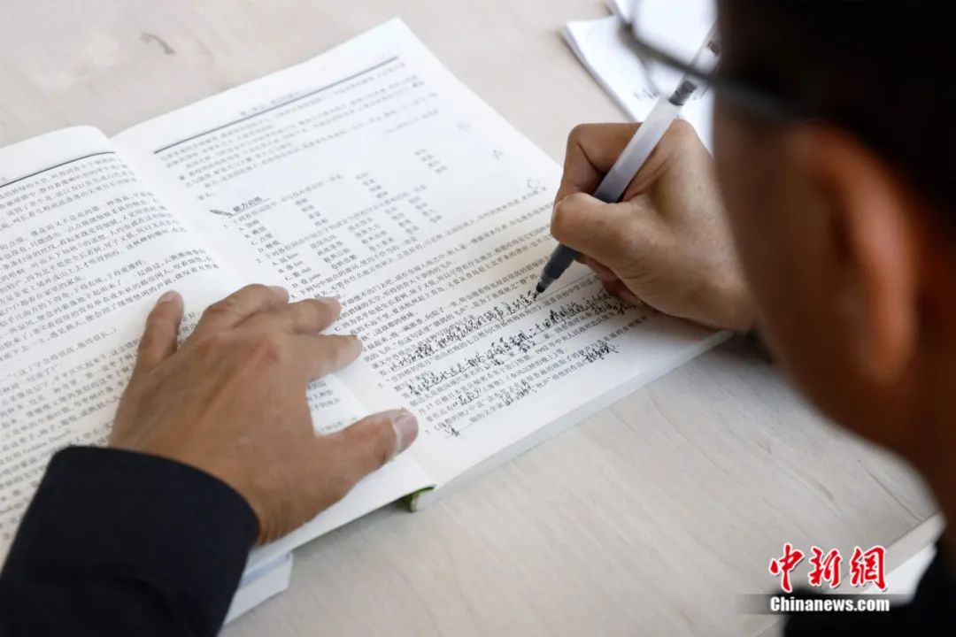 图为保付祥利用休息时间学习。中新社记者 李嘉娴 摄