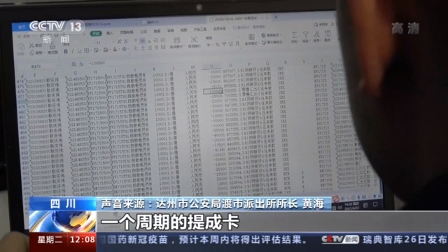 四川省达州市公安局渡市派出所所长 黄海: 这是一张(员工)提成卡,一个周期的提成卡,一个周期两个月左右。经理他的提成是13万,这下面这是他的员工,挨着他提成的,员工提成是两万、三万,这是一个小组的提成。