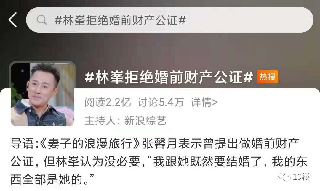 之后,“林峯拒绝婚前财产公证”登上热搜。