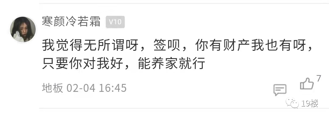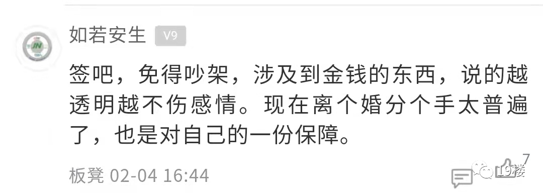 楼主的帖子引起了热议。在帖子的评论区,部分网友表示签订婚前协议后,双方相处能更加的透明,两个人之间的感情也不会受影响。