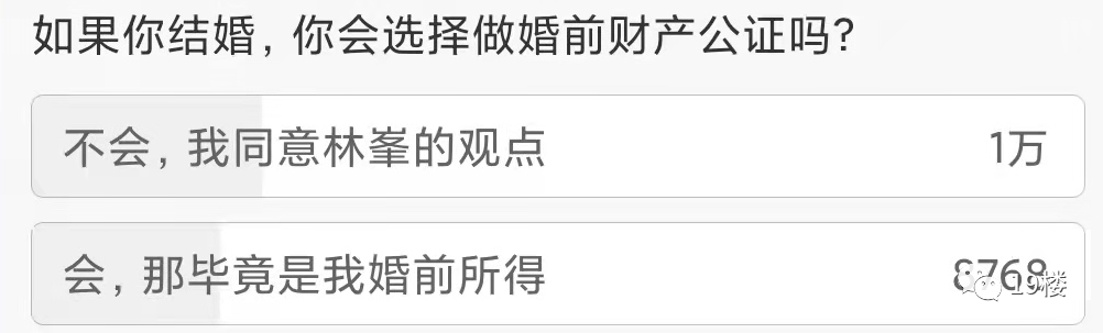 热搜下,有网友发起投票,大多数网友同意林峯 的观点,选择不做婚前财产公证。