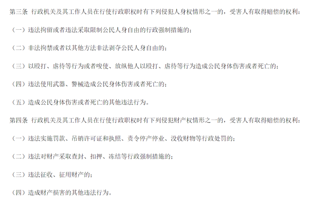 △ 《中华人民共和国国家赔偿法》规定的有权取得国家赔偿的情况,来源:中国政府法制信息网