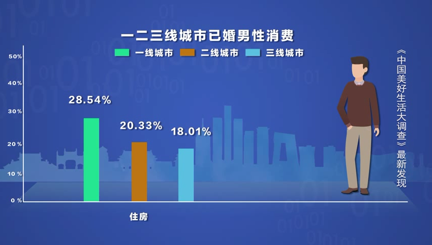 在不同类型的城市对比中,一线城市的已婚男人,在住房方面的消费远超二三线城市的已婚男人。