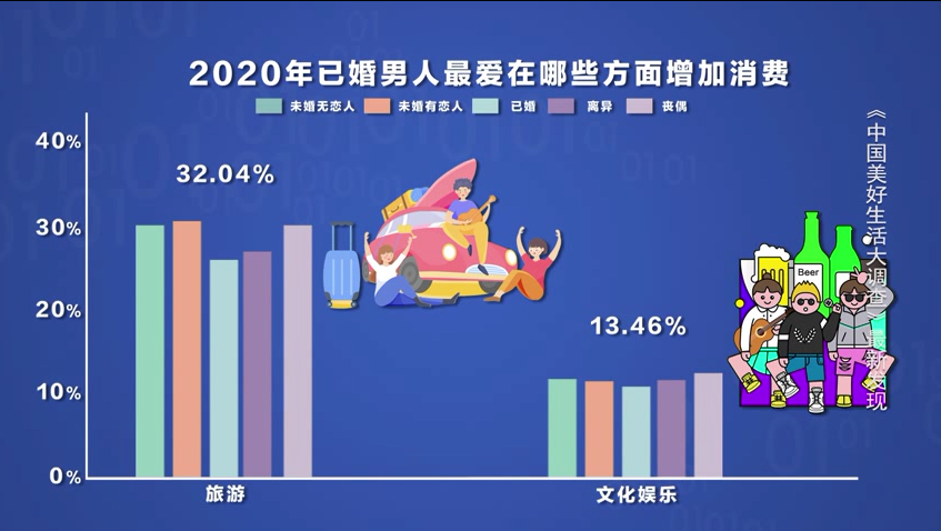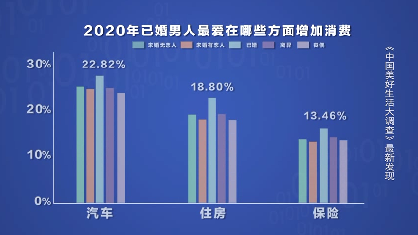 《中国美好生活大调查》的数据显示,已婚男人的家庭责任感很强。汽车、住房和保险是他们消费的心头好 ,这三方面的消费他们明显高于其他状态的男性。