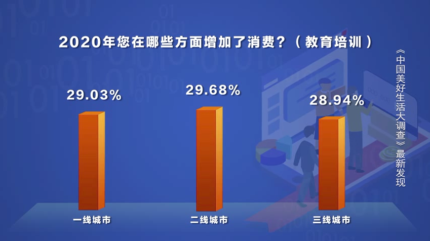 不管身处哪里,对教育培训方面的消费支出,一二三线城市的已婚男人们表现得出奇一致。
