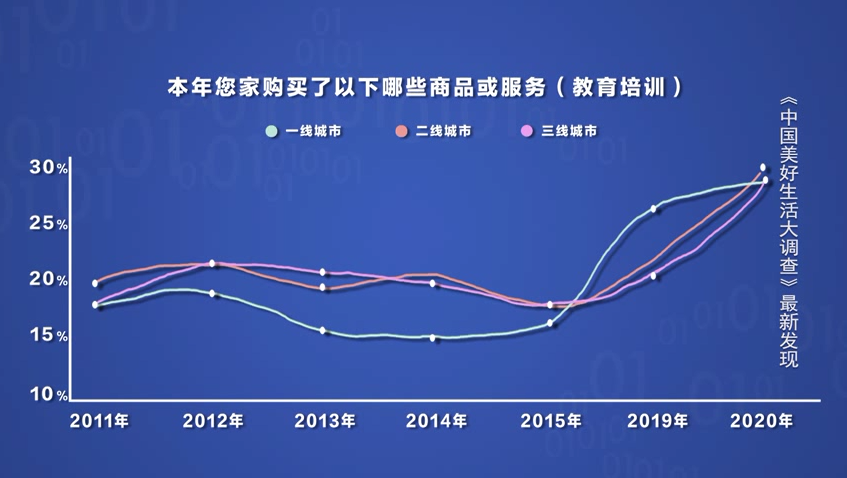 从近十年的数据来看,不同类型城市的已婚男,第一次在教育培训支出上,达成高度统一。