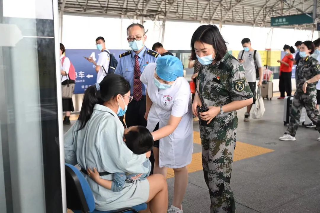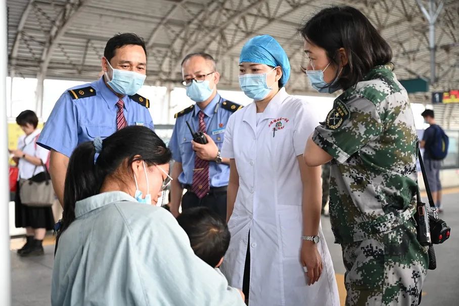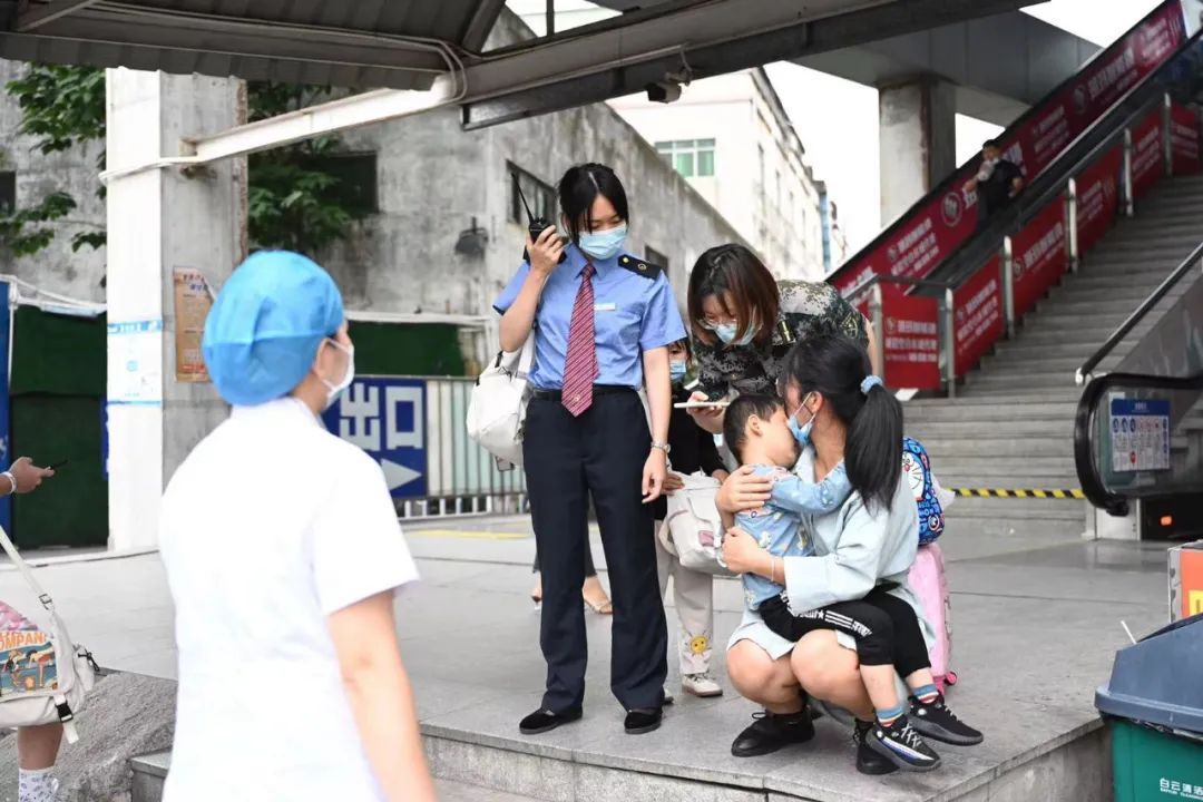 这时,驻站防疫医生也一路小跑,赶到站台上,她迅速对孩子进行了检查,见孩子虽没有生命危险,但精神状态仍不太好,建议到医院进行检查。钟洁迎立即拨打120急救电话,并安排人员将小男孩一家送到停车场以最快速度送到医院。后从医院得知,男孩状态已趋稳定。