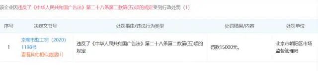 记者在企查查上查询发现,忆家安的主公司为北京亿家安互联网科技有限公司。2020 年 12 月,该公司因为违反了《广告法》第二十八条第二款第 ( 五 ) 项的规定,被北京市朝阳区市场监督管理局处以罚款。《广告法》第二十八条第一款规定:"广告以虚假或者引人误解的内容欺骗、误导消费者的,构成虚假广告。"第二十八条第一款对虚假广告的情形进行了列举,第五项就是:"以虚假或者引人误解的内容欺骗、误导消费者的其他情形"。