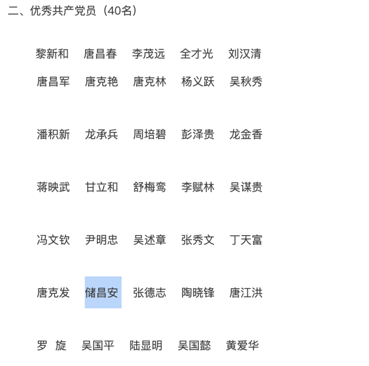 2015年,储昌安毕业,成为靖州苗族侗族自治县大堡子卫生院的一名医生,储昌安主要负责党建工作,他将名次倒数的党支部变为镇级年度“优秀党支部”,而他也被评为“优秀党员”。
