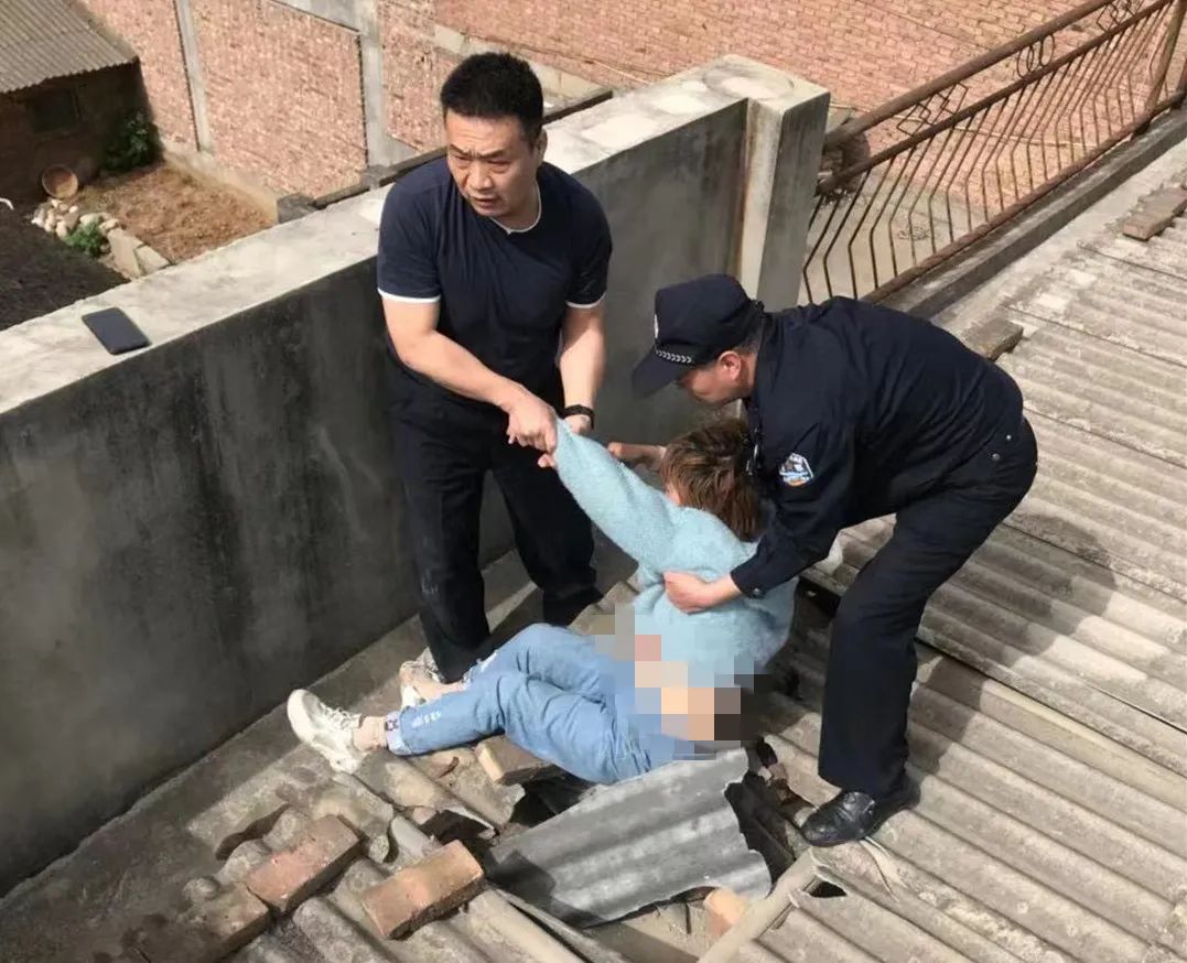 当日10时许,弘农路派出所接到辖区群众报警:在弘农路中段居民区,一女子坐在三楼房顶边哭泣,欲跳楼轻生。