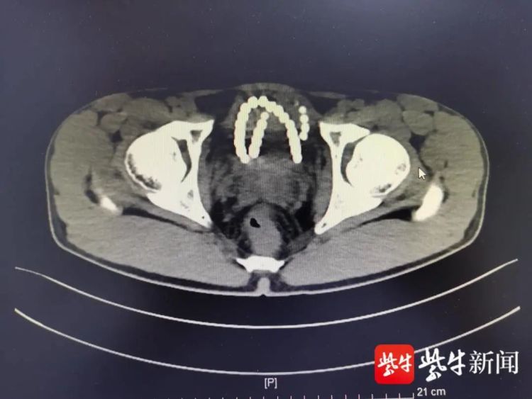 近日,江苏苏州高新区人民医院泌尿外科的医生成功从一名小伙子的膀胱里取出一串“水晶项链”,长度为20厘米,医生数了一下,足足有37枚珠子!