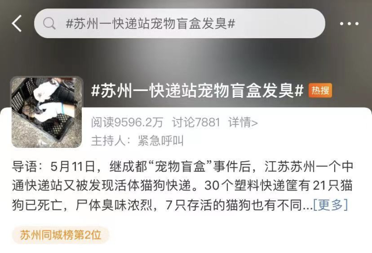 继成都“宠物盲盒”事件后,5月11日,江苏苏州一中通快递站被发现有活体快递!