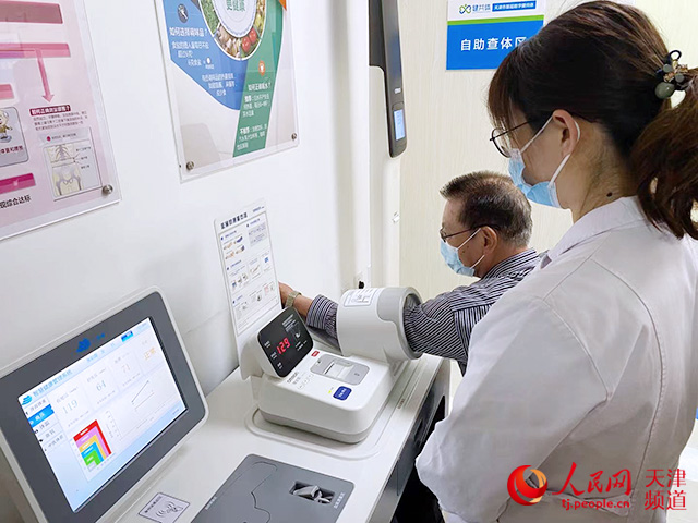 家住天津市和平区南营门街的徐大爷到社区卫生服务中心“健康家园”做检查。人民网 张静淇摄