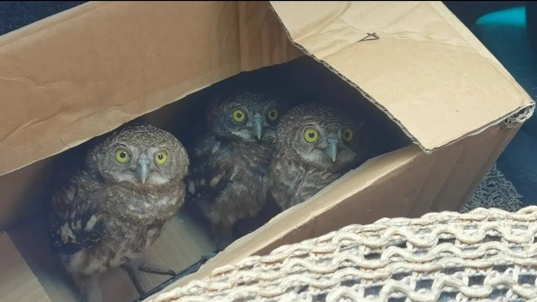 工作人员分析,由于受近期雨天影响,这几只小猫头鹰可能是从哪棵大树的窝里被风雨打掉了下来,结果迷路了,兜兜转转碰巧来到王大叔家。