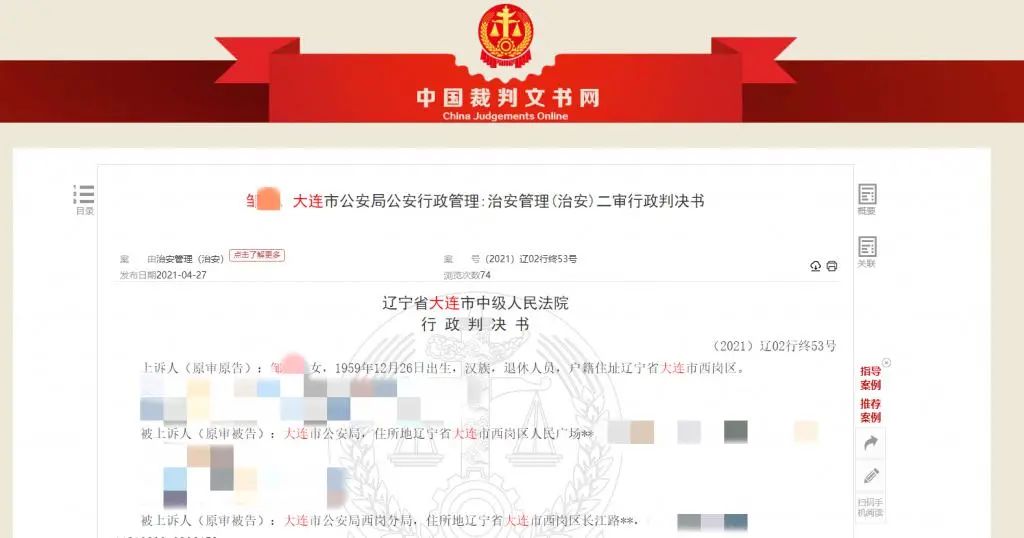 近日,大连中院的二审行政判决书在中国裁判文书网上公开,邹女士的诉请被驳回。