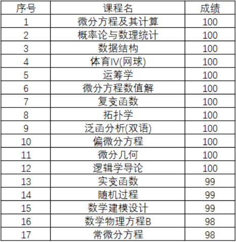 一份数学相关专业的学生成绩单引发关注:12门课100分,还有多门99分、98分!