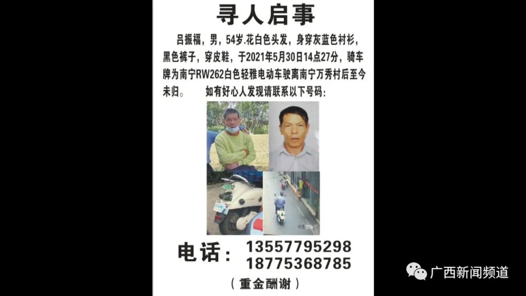 据介绍,吕女士的父亲吕先生平时靠打临工挣钱养家。5月30日下午,吕先生像往常一样,骑着一辆白色电动车上街兜客,但出门后一直未归。