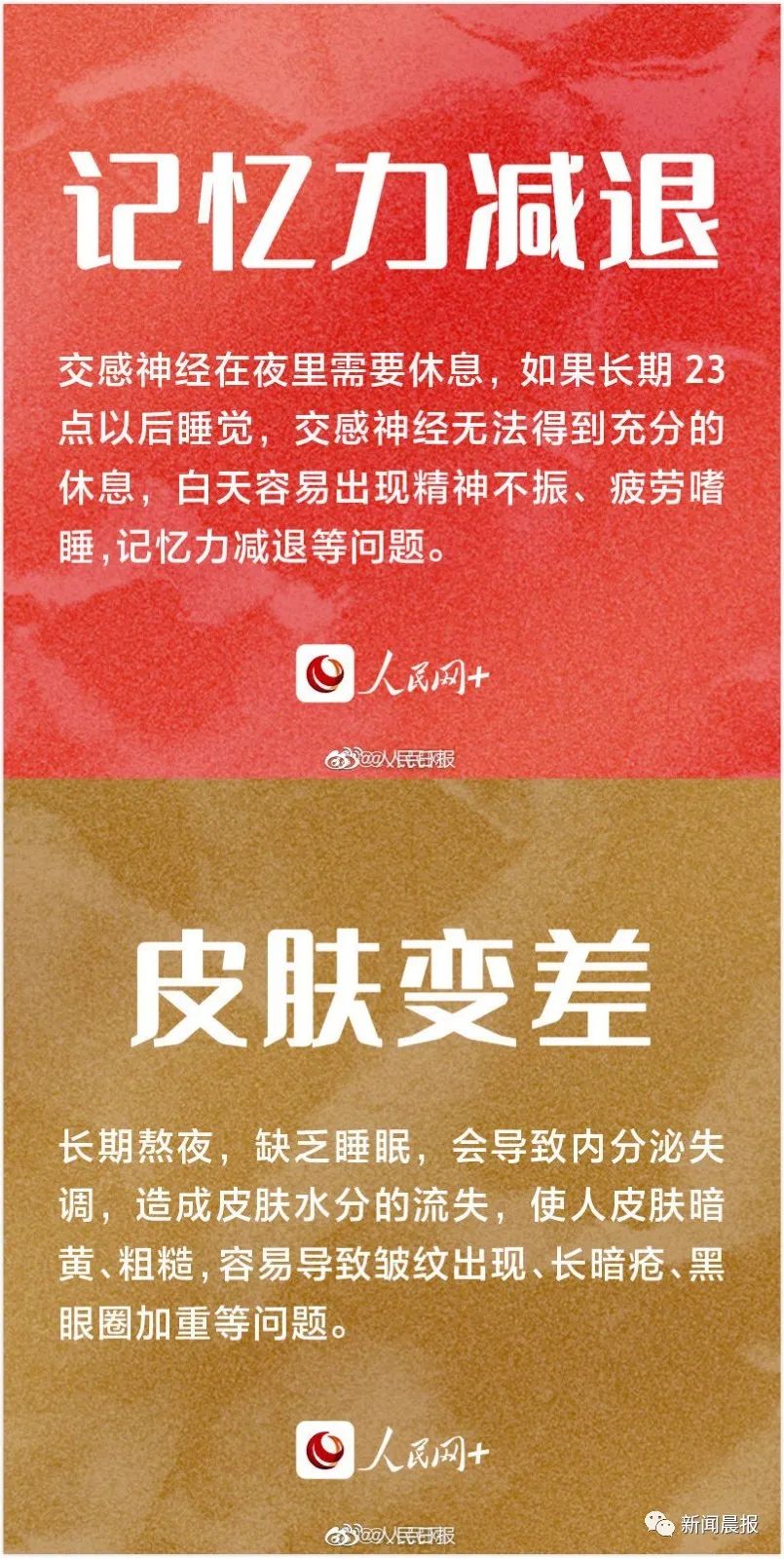 在现实生活中,很多年轻人与唐羽一样,或工作太多不能早睡,或娱乐太多不想早睡,习惯用牺牲睡眠拉长白天的时间。事实上,长期熬夜不仅容易长出影响颜值的老年斑,还会引发肥胖、脱发、记忆力下降,以及增加心脑血管疾病、甚至老年痴呆的风险。