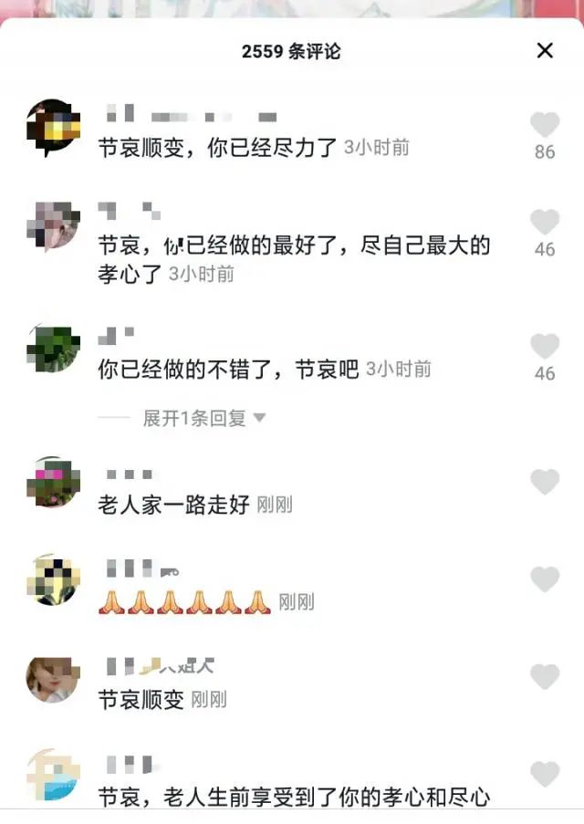 网友纷纷安慰他:"你已经做得很好了,节哀""老人家一路走好。"