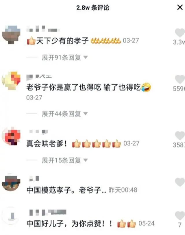 近年来视频社交平台很流行,马先生就把和父亲互动的视频分享在网上,没想到感动无数网友,大家纷纷夸他是孝子,"真会哄老爹"。还有不少网友从全国各地寄各种营养品给这位老父亲。