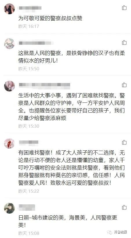 民警王颢霖说,事发时,孩子在景区和父母走散了,自己一个人沿着海边走。游客报警后,第一时间把孩子接到派出所。