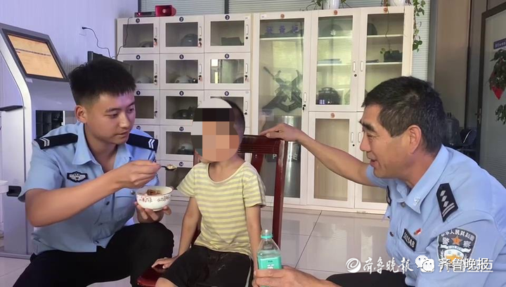 “孩子自己一个人沿着路走了一个多小时,到所里之后一直哭,说饿了。”民警费立刚告诉记者,得知孩子饿了,他和另一位民警王颢霖立马分头,一个去买水,一个去食堂端来米饭和鸡腿。