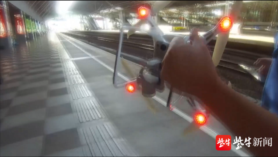 据介绍,当时李某根据无人机传回来的影像,发现了无人机的坠落地点。要求进站找寻无人机,被工作人员拦住,并将情况汇报给南京站派出所民警,请求处理。民警和车站工作人员在铁轨上找到了失控的无人机,及时捡起,并将该男子李某带至派出所进一步处理。
