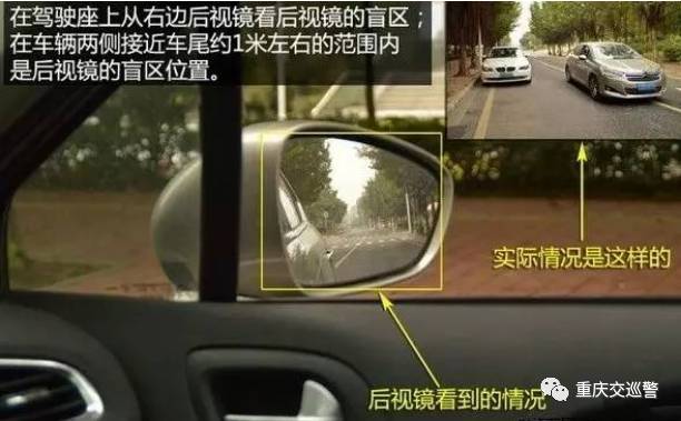 此外,汽车后视镜也存在有盲区,大概位于距离右侧车尾约1米的位置,日常开车过程中一定要注意。