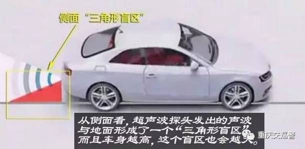倒车雷达之类的电子辅助设备,由于雷达的发射范围是呈圆锥状的,因此倒车雷达主要的盲区范围就是雷达超声波探头发出的声波与声波之间没被“照射”到的范围。