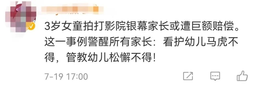 看场电影赔10万,家长自然不乐意。但也影城方也不乐意呀,好好的银屏就这么被熊孩子拍坏了总不能自行买单吧。