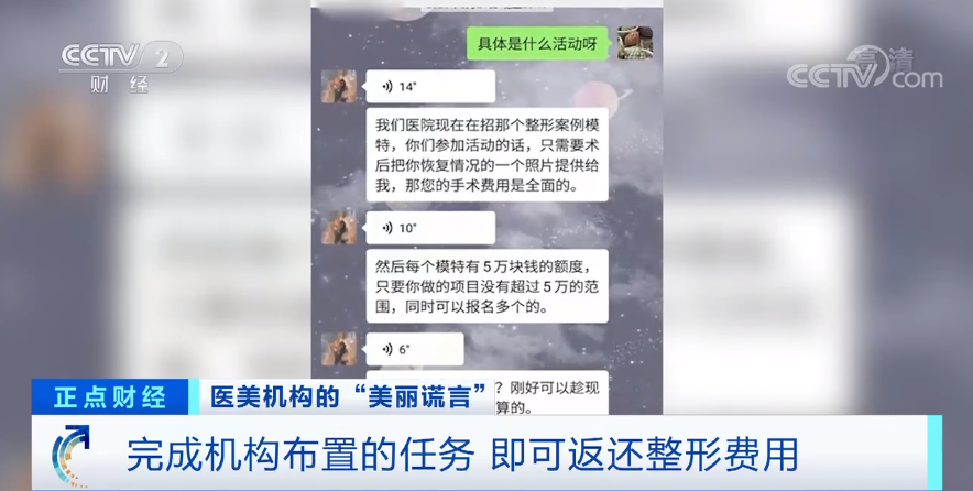 在与发布这则广告的人取得联系后,小刘得知,这是一家名为悦秀医美的整形机构所策划的活动,顾客只要来到这里,一次性付清整形费用的同时,与他们签署一份协议,保证每个月完成他们所布置的任务,悦秀医美便会将这些费用分期返还给顾客 。这一期间,顾客要充当他们的整形模特,机构方还可以将顾客们整形后的照片用于推广。