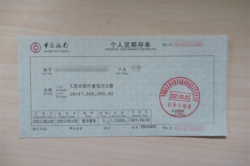 不久前,年轻姑娘小艾(化名,23岁,江西人)满心欢喜的来到中国银行萧山开发区支行,要求办理一张面额为2100万元的存单结清业务。
