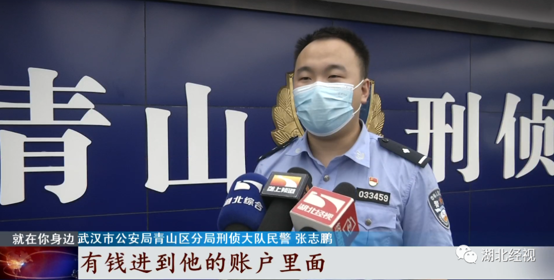 武汉市公安局青山分局刑侦大队民警张志鹏说:“有钱转进贾某的银行卡账户,他就按要求转到微信里面,再从微信转到指定账户就可以了。每过10万块钱就给贾某400块钱的报酬。他当天在那里待了两个小时,然后就收到了几百块钱的报酬。”