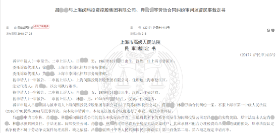 2009年3月,吕先生与上海闵熙钢铁公司(后更名为“闵熙投资公司”)签订了期限为期5年的劳动合同,约定吕先生全面负责公司的日常经营业务,执行不定时工作制,月薪2万元;5年劳动合同期满后,公司给予吕先生一次性奖励50万元。