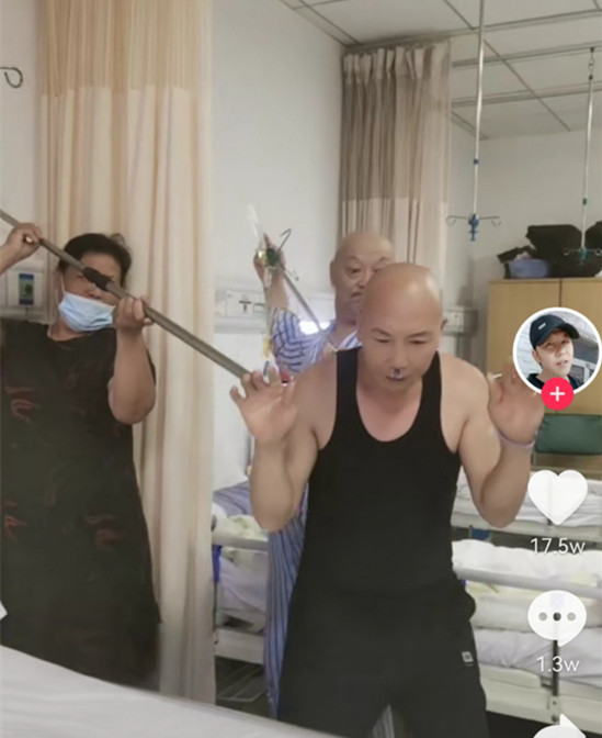 赵新志的病友配合他拍摄搞笑视频。 网络视频截图