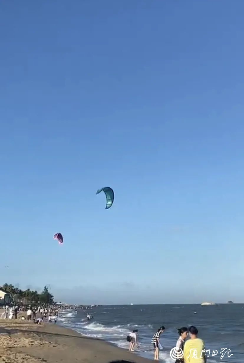 近日,市民王女士通过厦门日报热线968820,向本报反映了她在黄厝沙滩上遇到的惊险一幕:一家人站在岸边照看小孩,突然家人被飞来的滑翔伞绳子勒倒在地,险些危及生命。