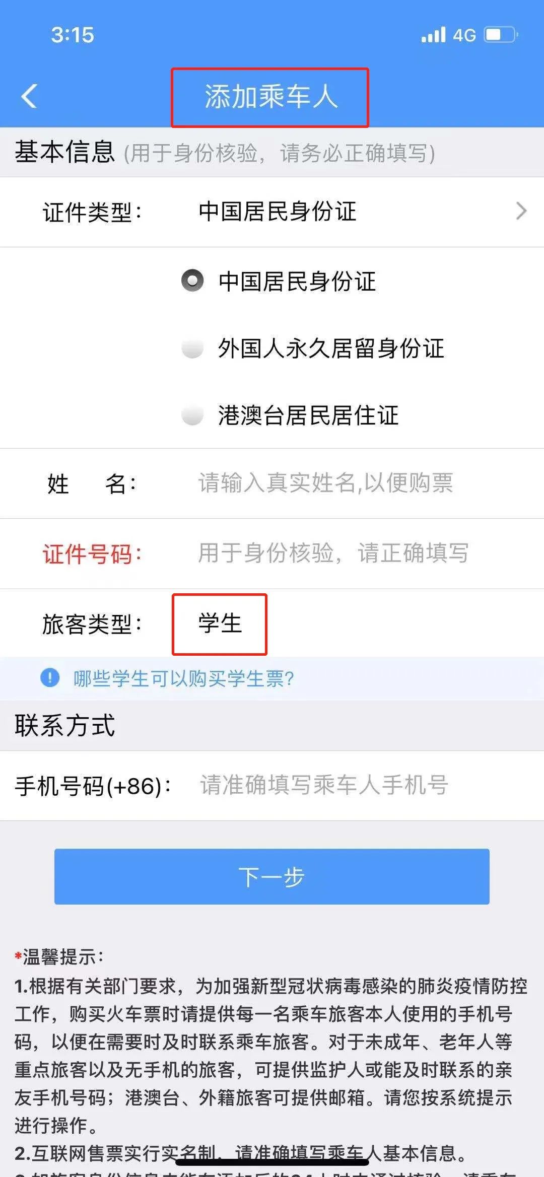 入学新生可通过铁路12306网站或手机客户端购买学生票 ,在添加乘车人时将旅客类型选为“学生”。