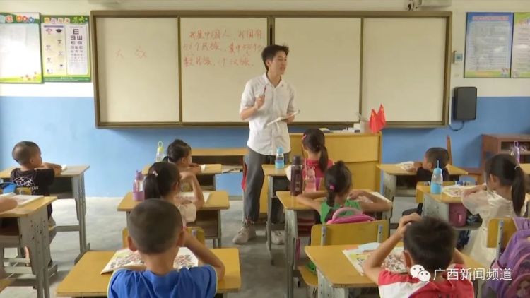 北海市合浦县石湾镇红锦小学教师 赖家益:除了数学课,其它的基本上都是我上,《道德与法治》也是我上。开学的第一节课我就把《道德与法治》和语文课结合起来来上,去给孩子们树立一种强烈的爱国心,让他们树立起正确的三观。