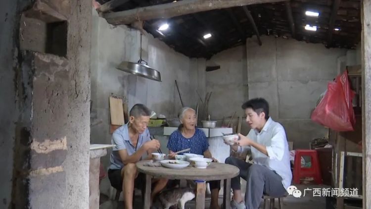 赖家益的家在离红棉小学两三公里外的红棉村,祖孙三人生活虽然简朴,一顿简单的午饭,三个人却吃得满脸幸福,因为这就是他们想要的生活。