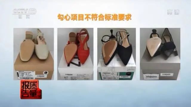 经过检测勾心项目共有4款高跟凉鞋不符合标准要求,这4款产品分别是:
